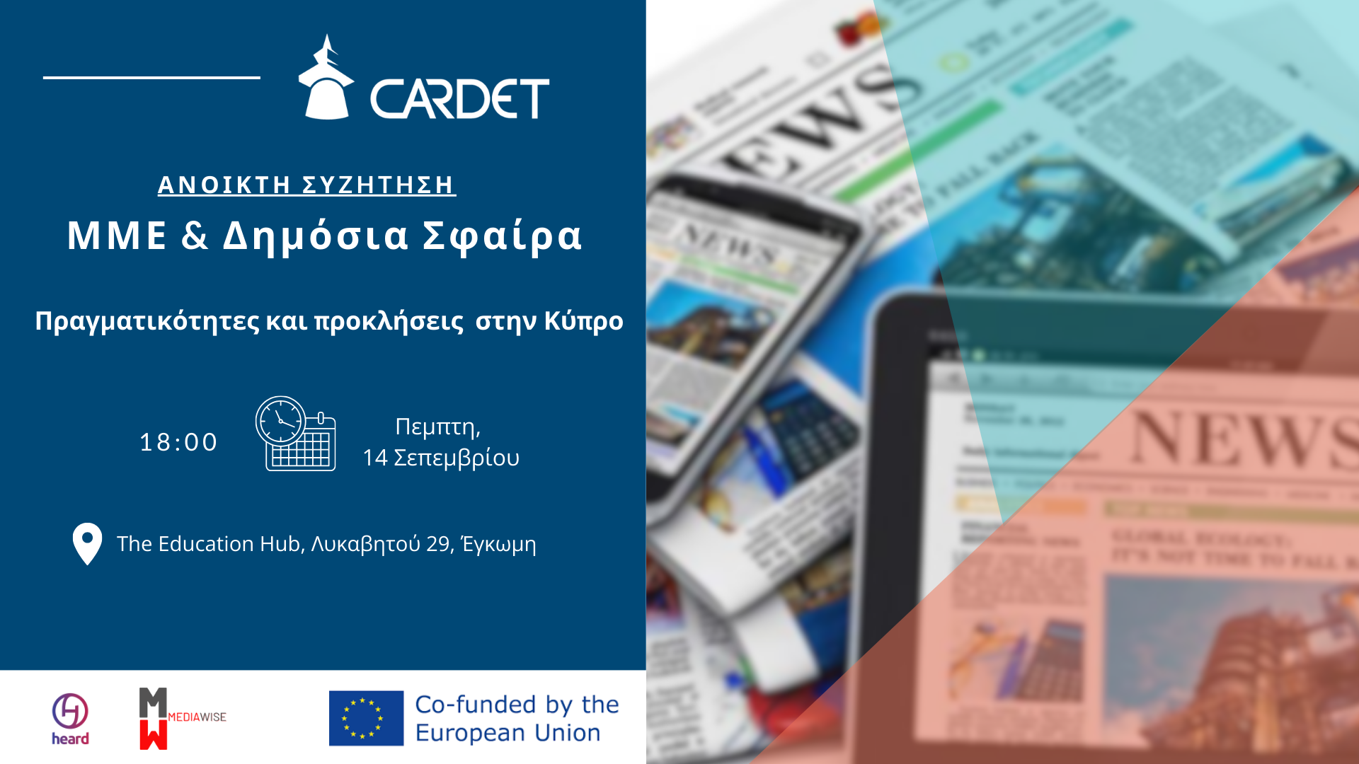 Το Ερευνητικό Κέντρο CARDET διοργανώνει την Πέμπτη 14 Σεπτεμβρίου, 18:00, μια εξαιρετικά ενδιαφέρουσα συζήτηση για ...